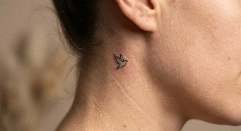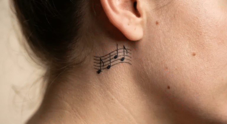 • Tatuaż z boku szyi: Bardziej widoczny, często wybierany na sentencje, roślinne motywy, niewielkie symbole.