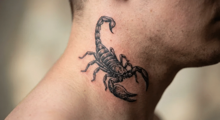 • Siła i władza: Motywy takie jak lwy, sokoły, wilki czy skorpiony mogą symbolizować dominację, siłę i odwagę, szczególnie popularne jako męski tatuaż na szyi.